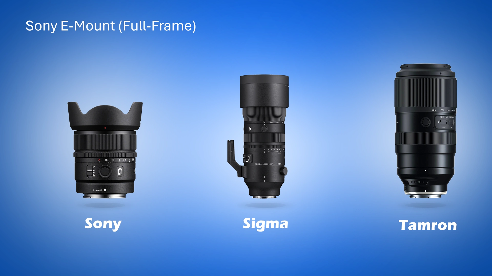 | Sony | FE 85 mm f/1.2 GM | Tamron 35-105 mm f/2.8 | Samyang 75 mm f/1.8 (2023) |